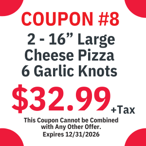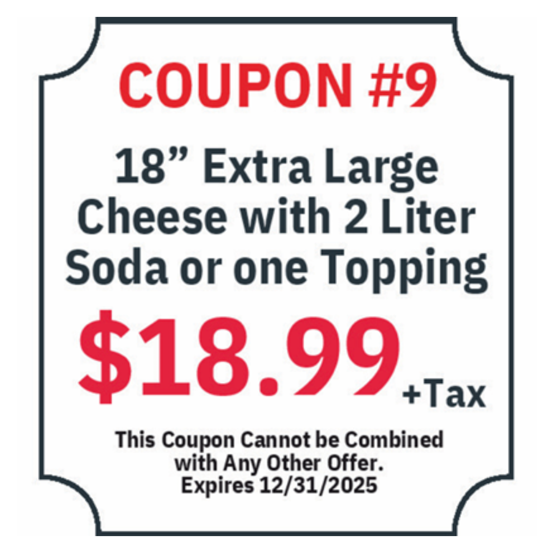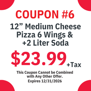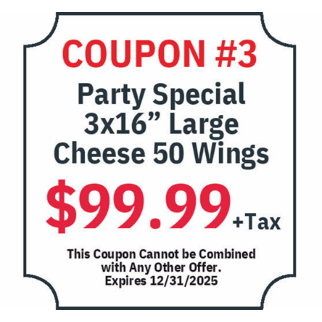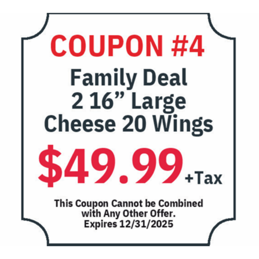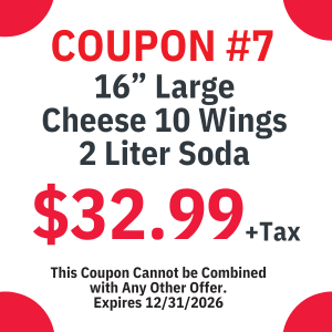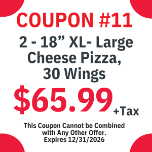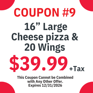 We have a wide variety of menu options that ranges from wings, subs, appetizers, salads, Italian dinners, and of course our specialty (Pizza!)